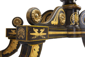 Tulip poplar; walnut, possibly maple; painted decoration, stencil gilding, brass