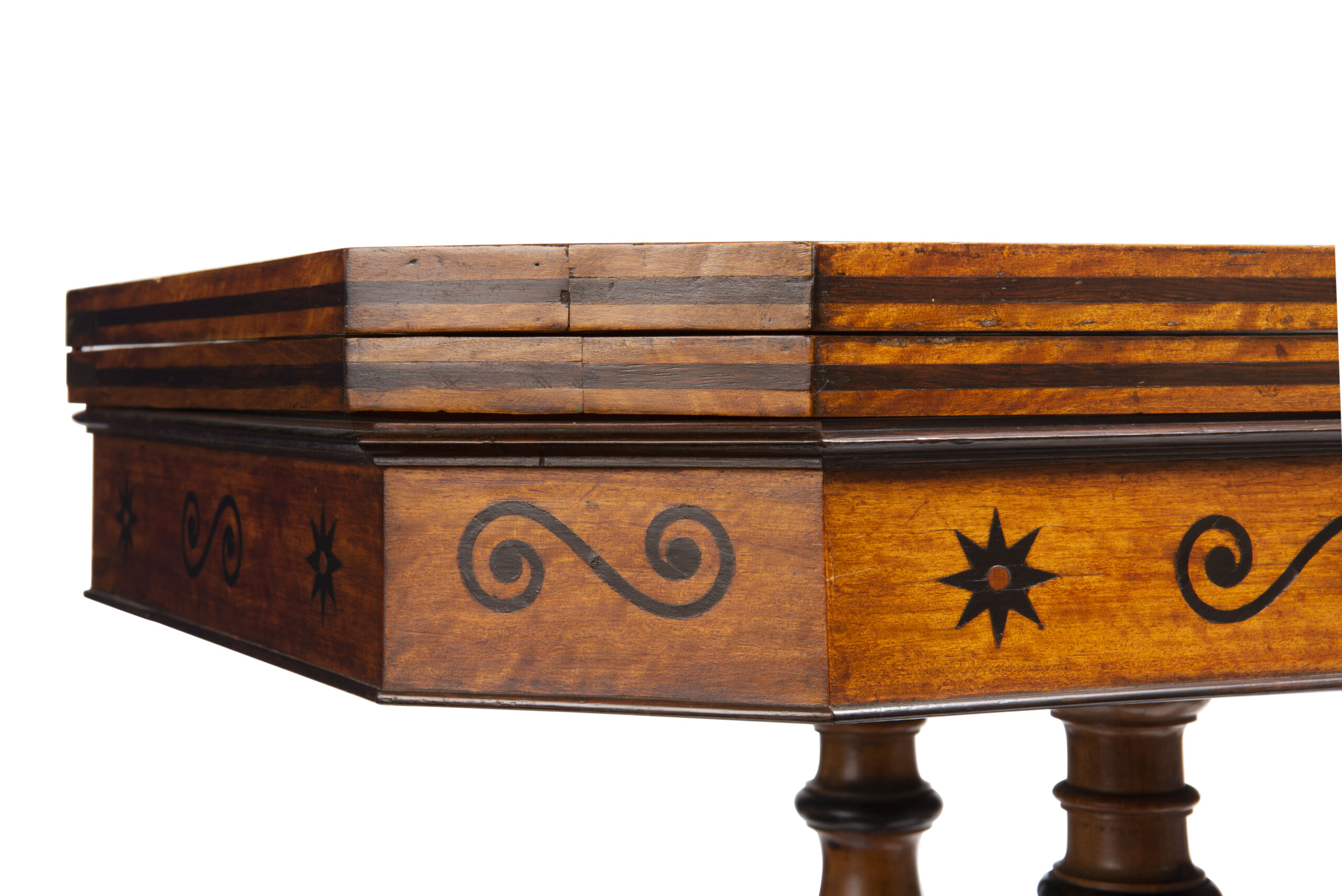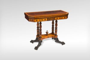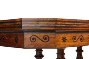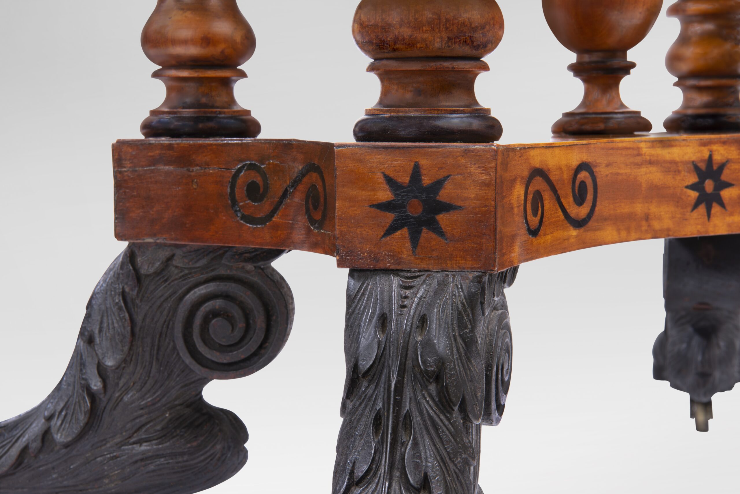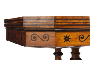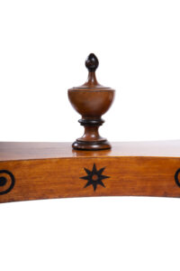 Primary woods: satinwood and mahogany veneer, ebony inlay, ebonized maple and mahogany