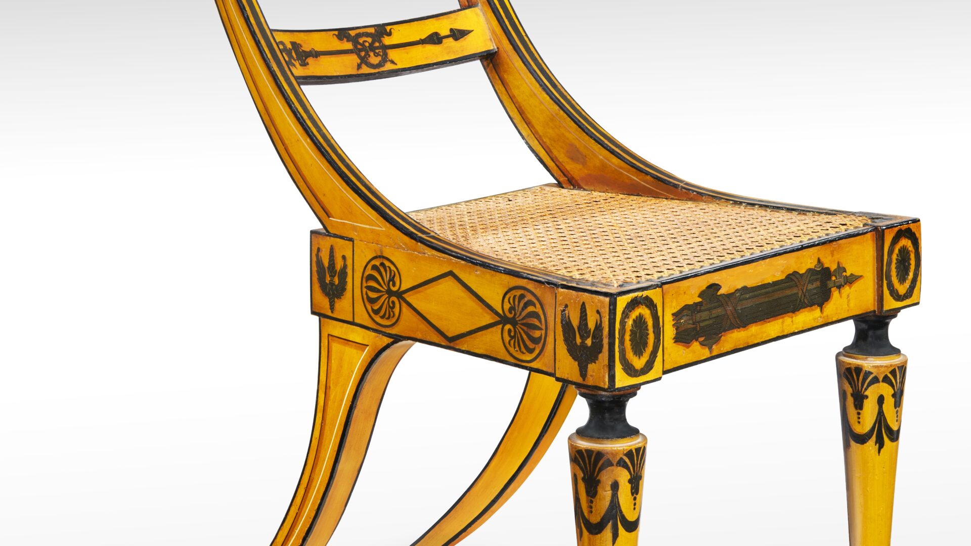Surface treatments: painted decoration, stencil gilding, replacement caning