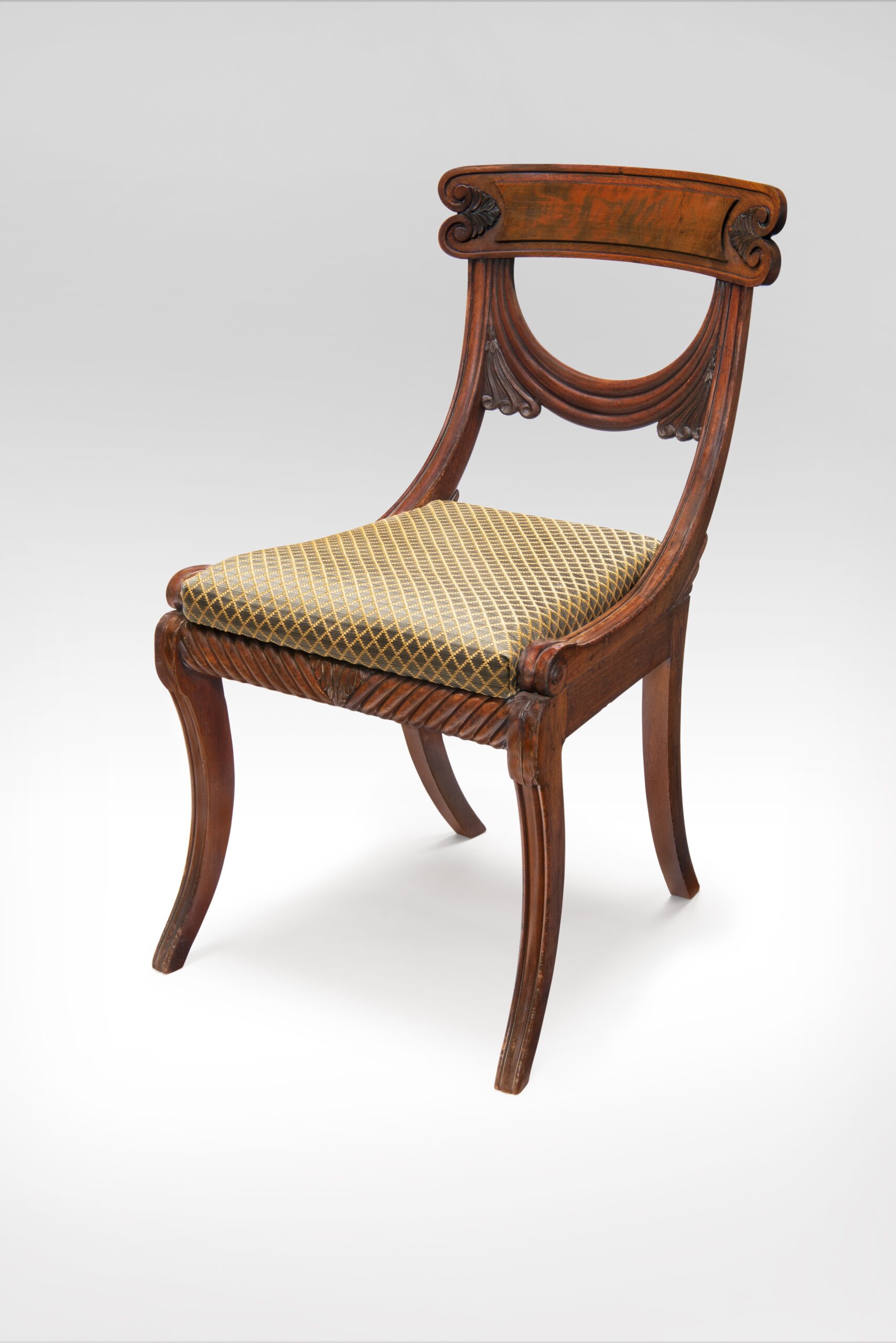 Mrs. Donald (Gloria Curtis) Horn, Roslyn, New York, 1976. Peggy N. (d. 2000) and Roger G. Gerry (1916–1995), Roslyn, NY; Their sale, Christie’s, New York, Oct. 7, 2004, lot 1562; Purchased by Schrimshers, 2004. [two chairs from the set were sold and later repurchased by Schrimshers in 2022]