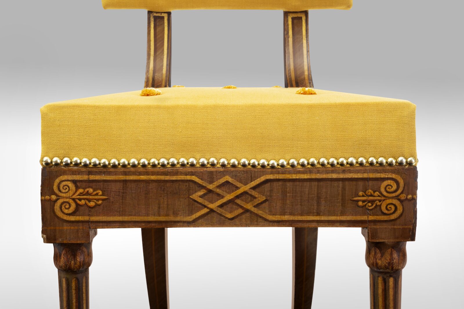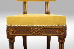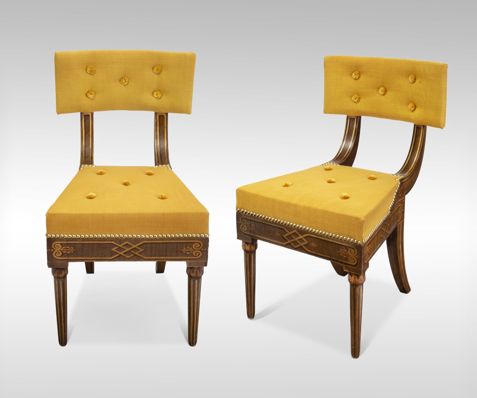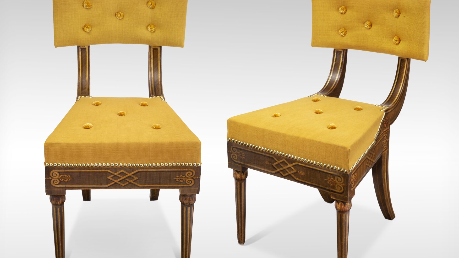 Surface treatments: painted and gilded decoration, brass, replacement upholstery
