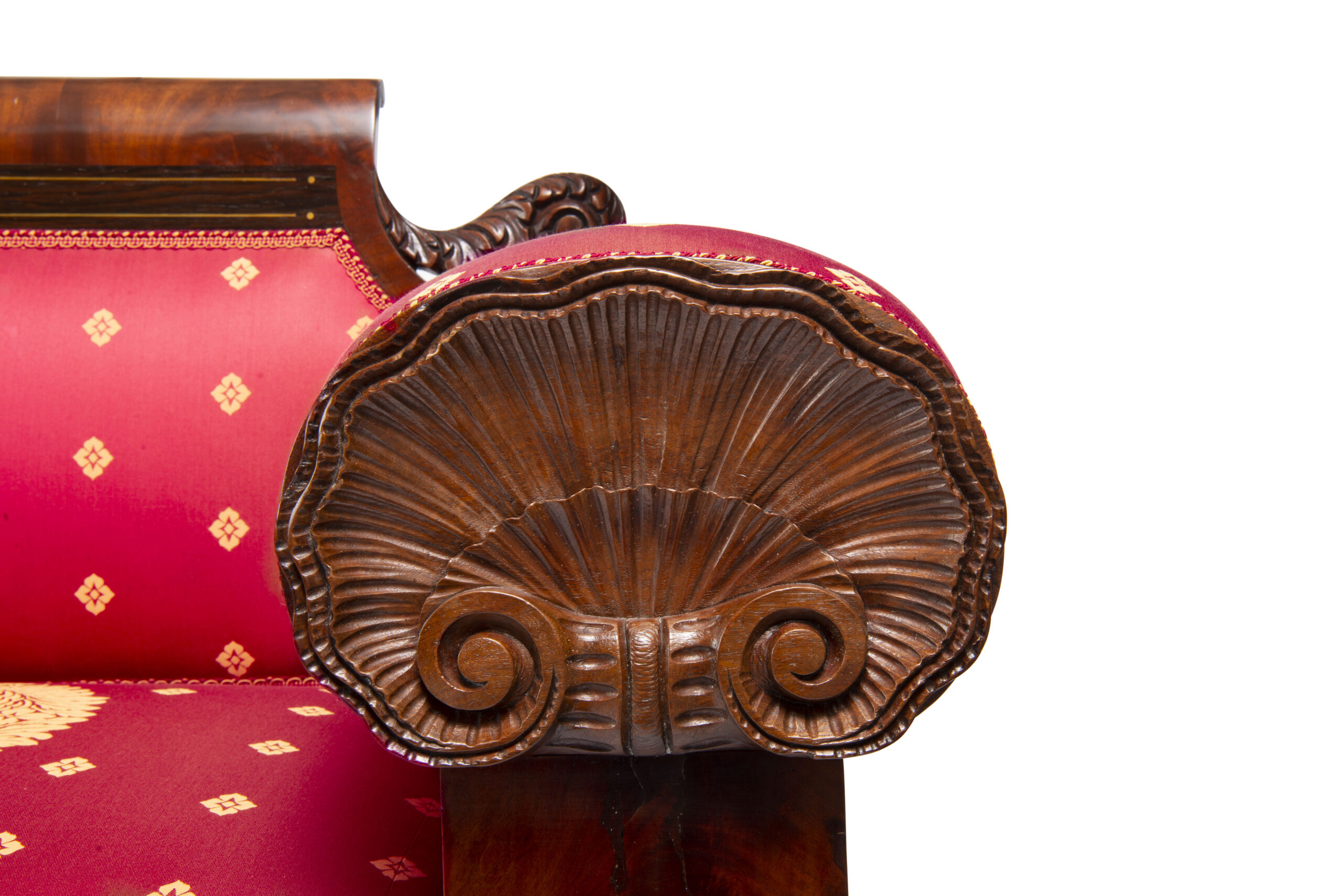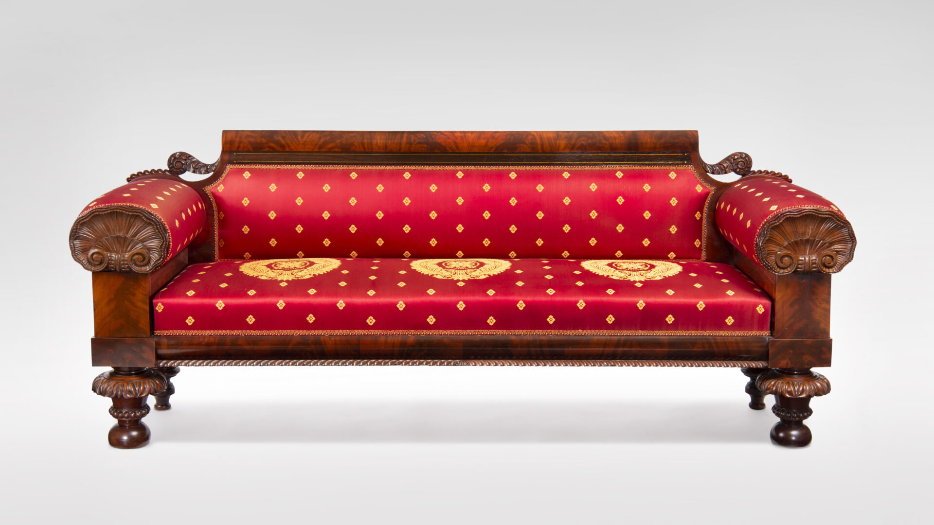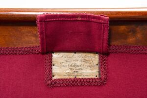 Printed on paper, on top of rail, outback: “David Fleetwood / SUCCESSOR TO WM. B. FLING / Chair, Sofa & Cabinet, Upholstrey [sic] / WARE ROOMS / No. 95 / WALNUT STREET / PHILADELPHIA.”