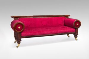 Surface treatments: brass, partial original under upholstery, replacement upholstery